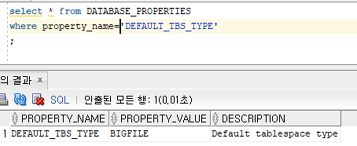 --기본값이 Bigfile인 관계로 Bigfile로 생성