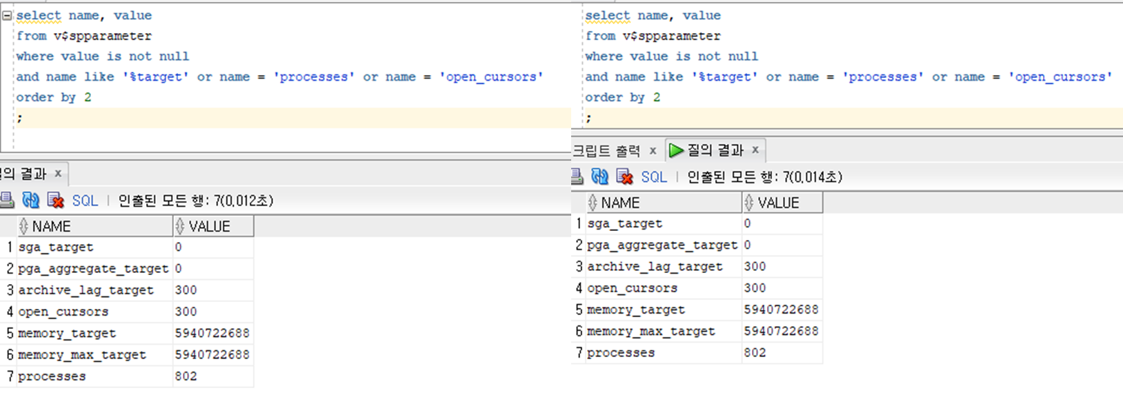 and name like '%target' or name = 'processes' or name = 'open_cursors'